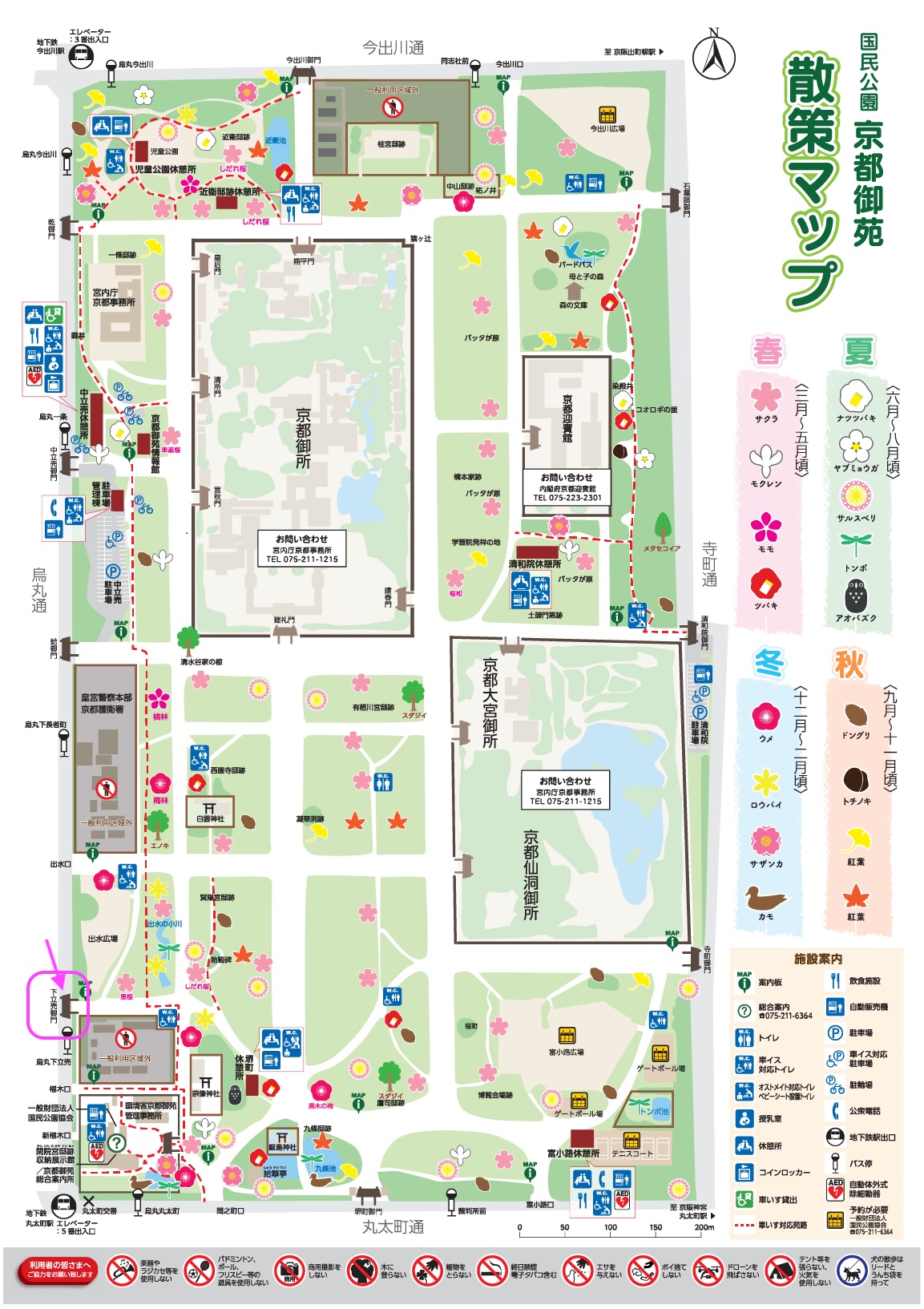 京都御苑には、御苑の南西の入口「下立売御門(しもだちうりごもん)」から入り、北上して梅林に向かいました。